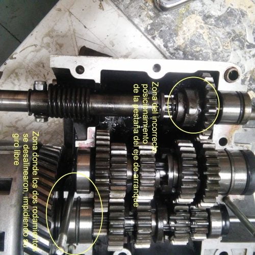 Gracias a vosotros. :-) . La duda es: Tras abrir motor, limpiar carbonilla, aceites y lodos, cambiar rodamientos, retenes, casquillos de biela, juntas, etc, funciona todo bien EXCEPTO el pedal de arranque: Con la moto arrancada, se queda abajo. Y suena como un arrastre de piñones. Cuando paro el motor, vuelve a su posicion inicial. Si lo subo a mano, con el motor en marcha, no se mantiene, vuelve a caer. Tengo los manuales de taller y vuestras fotos del desmontaje. Y parece que todo está en su sitio. La precarga del muelle del arranque es 1/4 de vuelta (Intenté darle más precarga, pero se rompió el muelle original, y conseguí otro igual, que lleva ahora). ¿Se os ocurre algo? antes de volver a abrir el motor.
